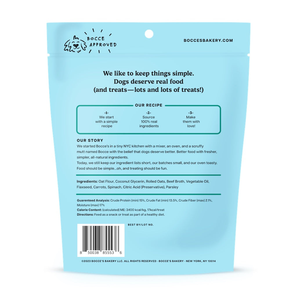 Bocce's whipped up a creepy concoction of tender and chewy bites, ensuring no pooch goes home empty-pawed this Halloween! Created for your canine with beef broth, carrots, and spinach.