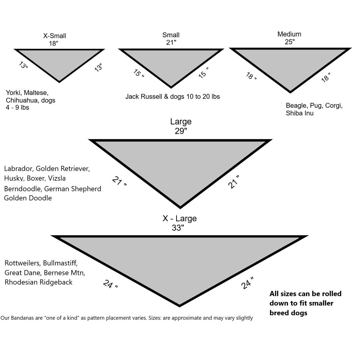 How to Use: For large dogs just tie around neck, smaller dogs roll down the top edge to make smaller and tie around neck, leaving a few inches for comfort. Wear bandana in front of chest or to the side or laying on dogs back – you choose the look!