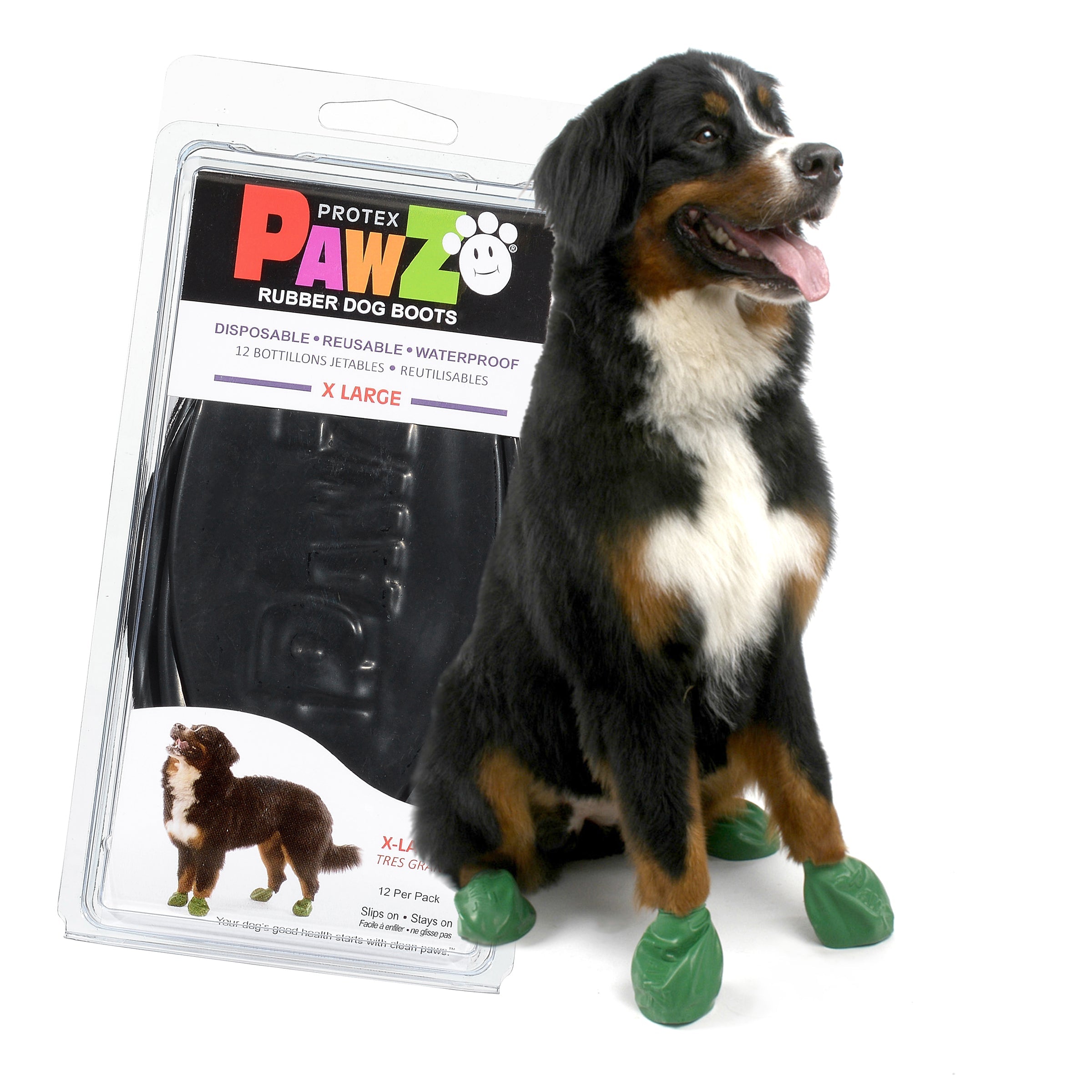 PAWZ is the world's only disposal and reusable water-proof dog boot. Made of natural rubber. PAWZ are 100-percent biodegradable. PAWZ are designed to go on easily and fit securely without zippers or straps. PAWZ is the most natural feeling boot your dog can wear because without padding your dog can feel the ground providing a needed sense of security. Like a sock, PAWZ moves with your dog allowing full paw motion and comfort.