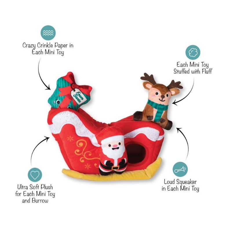 Petshop by Fringe Studio's "Hold On for Deer Life" burrow toy set is perfect for energetic pups who love interactive puzzles. It includes 3 mini toys with squeakers and crinkle paper that can be hidden inside the burrow structure for your dog to find. Great for small dogs, not for aggressive chewers. Adds a touch of holiday magic to playtime!