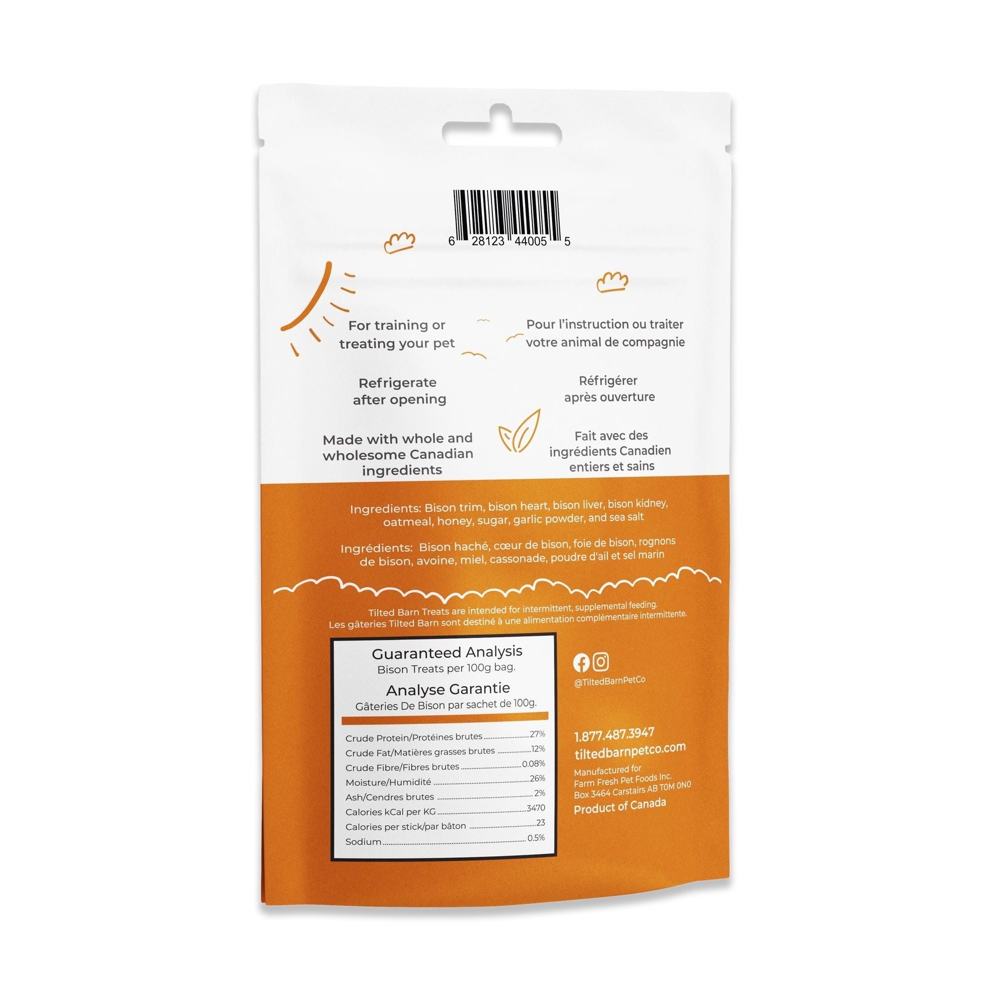 Indulge your furry friends with healthy, soft, preservative-free meaty treats suitable for pets of any age and size. These single-sourced protein treats crafted from all-natural, high-quality ingredients from Canada's prairies are 100% Canadian-made. Each 100g pack is resealable for freshness.