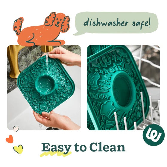 LickMat features suction cups for grip, is made of a non-toxic, BPA- and phthalate-free natural rubber, and comes in two colors: Forest Green and Lavender.