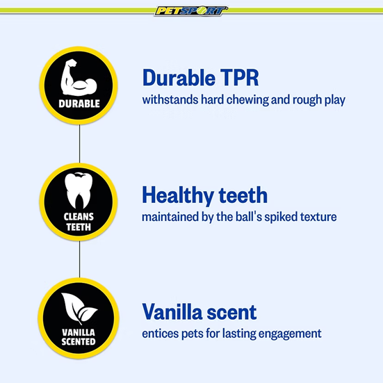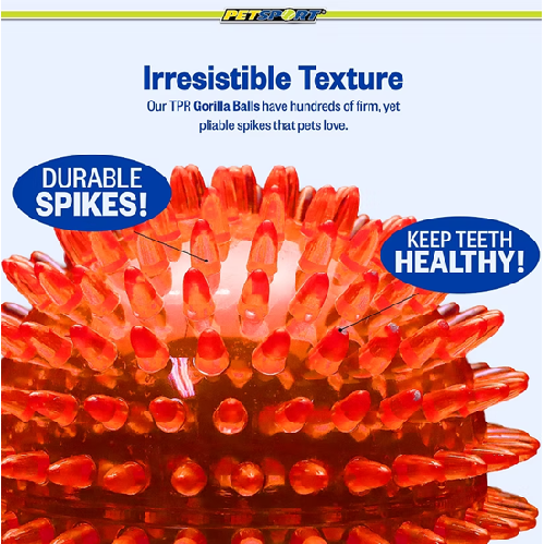 Gorilla Spiky Balls are durable, safe, and designed with key features like texture, squeakers and a vanilla-scent. The balls are made with hundreds of firm, yet pliable TPR spikes that help keep teeth & gums clean and healthy. It bounces and rolls, keeping your dog active and engaged. They are tough and built to last encouraging interaction that withstands chewing and rough play.