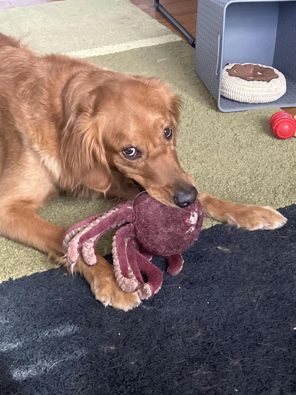 • Playful design, size and fabric appeal to dogs