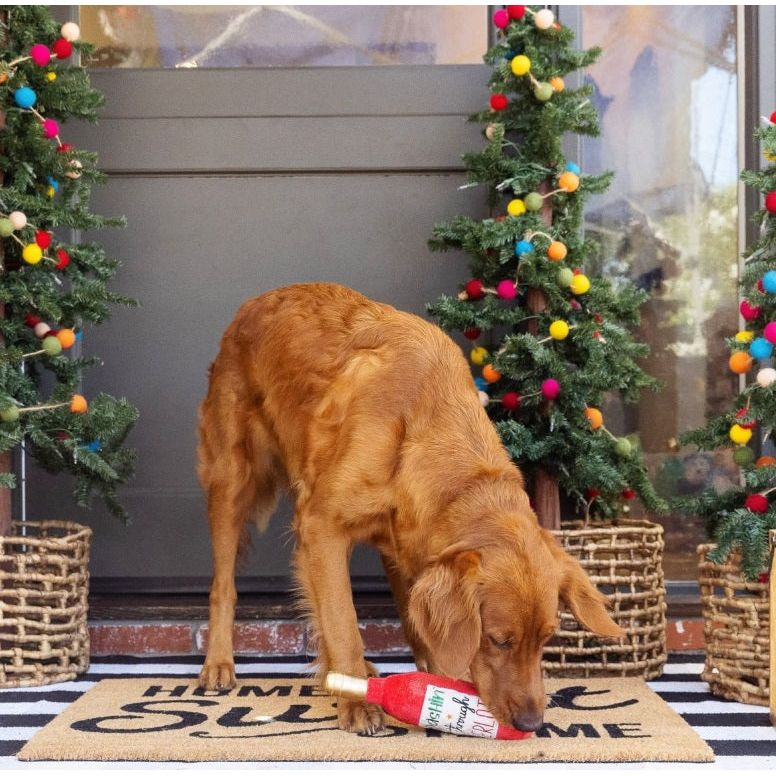 Get ready to unleash the fun with PetShop by Fringe Studios' "Dashin' Through Merlot" dog toy! With a loud squeaker and crinkle paper details, this toy is perfect for interactive playtime. Perfect for all dog sizes, this toy will have your pup feeling grape-ful all day long. (But maybe keep it away from any aggressive chewers.)